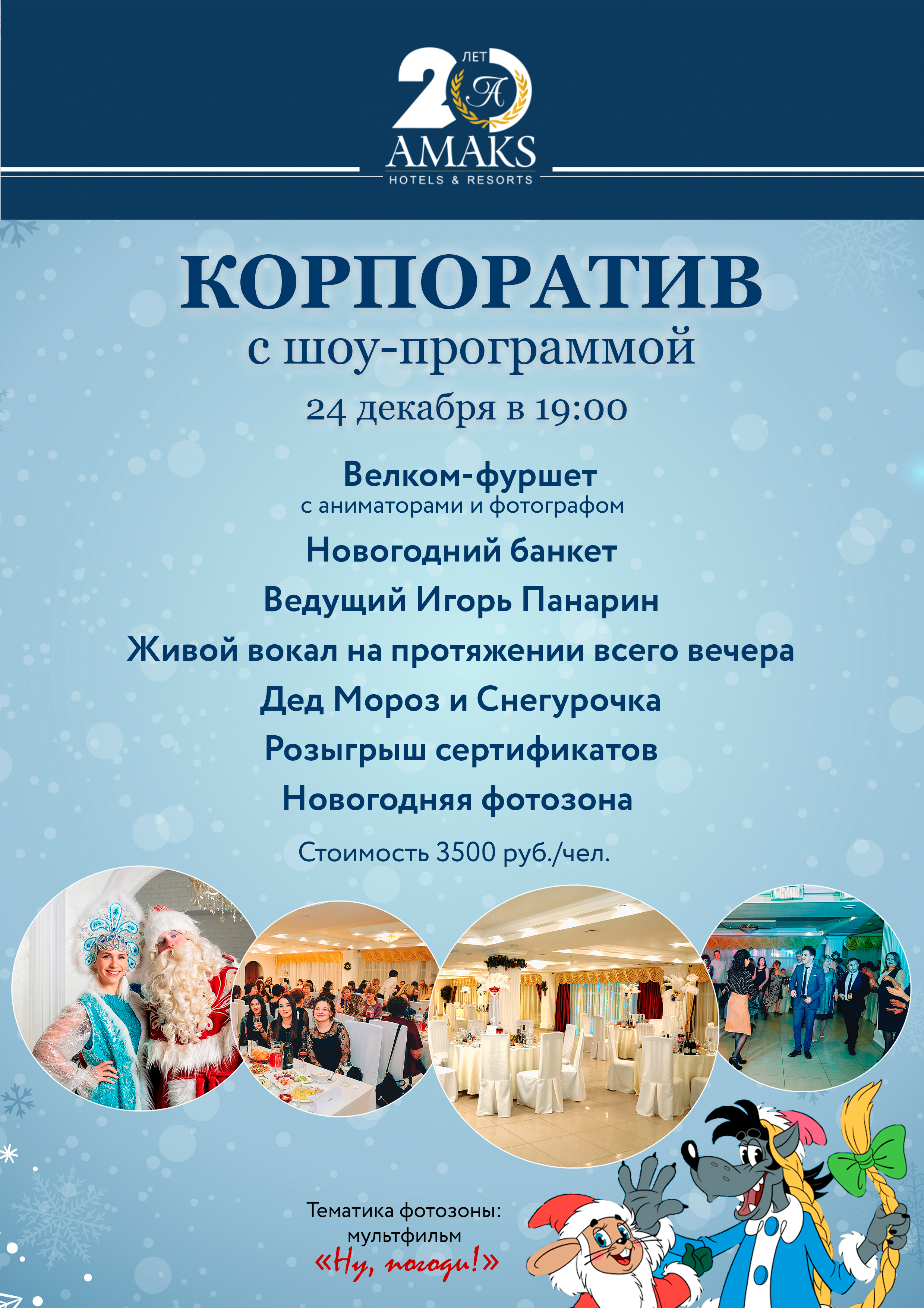 3500 руб./чел с шоу программой